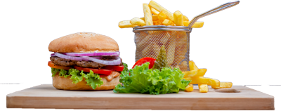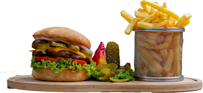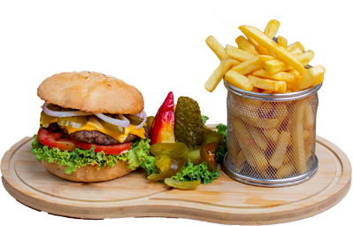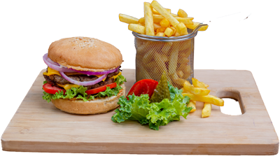DOUBLE CHEESE BURGERDouble juicy beef burger seasoned to taste topped with grilled onions, fresh sliced tomatoes, fresh crisp salad, double sliced cheddar cheese, galaxy burger sauce & served with fries. |