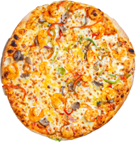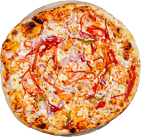 CHILLI SHRIMPS PIZZABoiled Shrimps, Red Peppers, Onions, Tomato Sauce, Chilli Sauce & Cheese. |