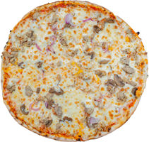 TURKEY AND CHEESE PIZZATurkey, Fresh Tomato, Mushrooms, Mayonnaise, Tomato Sauce & Cheese. |