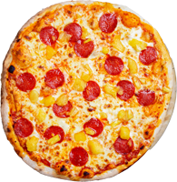 HAWAIIANBeef Pepperoni, Pineapple, Garlic Sauce , Tomato Sauce & Cheese. |