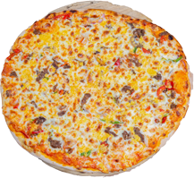 SICILIAN PIZZASliced Beef Pepperoni, Sausages, Tomato, Tartar Sauce, Tomato Sauce & Cheese. |