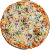 BBQ CHICKEN SPECIALBBQ Chicken, Onions, Red Peppers, Green Peppers, Tomato Sauce, Garlic Sauce, BBQ Sauce & Cheese. |