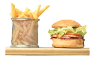 CLASSIC BEEF BURGERJuicy beef burger seasoned to taste with grilled onion, fresh sliced tomatoes, fresh crisp salad, galaxy burger sauce & served with fries. |